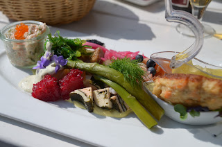 I dag har min mor og jeg været inde på Aros og få frokost! Vi sad helt oppe lige under regnbuen og fik vildt lækker mad. Selvom vi begge har set regnbuen før, startede vi med at gå derop. Der er sådan en flot udsigt udover Aarhus by og så er det bare så underligt med alle farverne. Min mor havde to billetter til en frokost tallerken som skulle bruges inden i morgen, så da jeg havde fået fri fra arbejde i dag, passede det med at vi kunne tage derind. Maden var virkelig lækker og jeg synes derfor at jeg blev nød til at dele nogle billeder med jer! Vi synes begge at frokost tallerknen var lige tilpas, man følte sig på ingen måde proppet bagefter, men heller ikke sulten. Til tallerknen fik min mor et glas rødvin og jeg fik et glas hvidvin. Personalet var så venlige og det var en ren fornøjelse at sidde og nyde så lækker mad med udsigt udover Aarhus. Har i været oppe og se Regnbuen? eller har i fået nået lækkert mad i restauranten der kan anbefales? Jeg kan hvert fald varmt anbefale denne frokost tallerken (som varierer efter sæsonen) og kunne sagtens finde på, at tage derind igen for at spise frokost :)