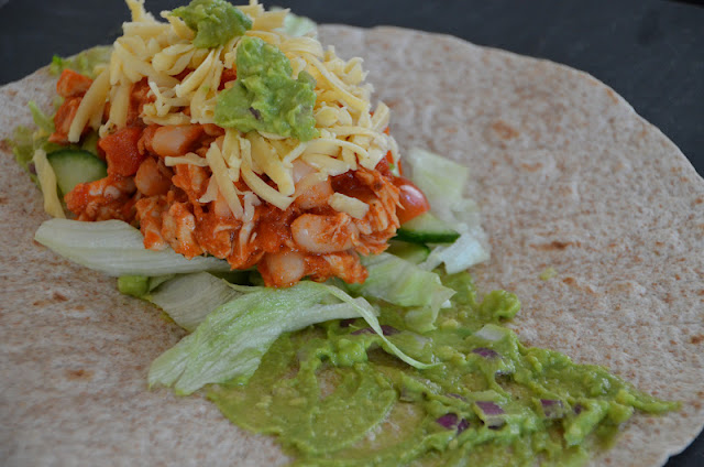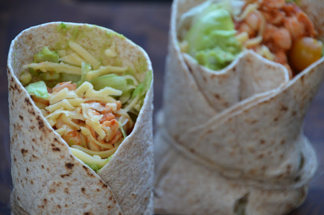 Påskeferien er startet og det er desværre ikke alle der har ferie. Christine er jo i praktik og har først fri når helligdagene starter. Det er derfor ikke blevet til helt “ferie-mad” endnu. Med ferie-mad mener vi måltider hvor man næsten har uendeligt med tid til at forberede aftensmaden. Vi elsker at lave mad og ser dage hvor man virkelig kan kredse om et måltid som nogle gode og inspirerende dage. Nå… men det var jo ikke en af de dage, og vi ville derfor helst kaste os over noget nemt. Vi tog derfor lidt kyllinge kød op fra fryseren og fandt på at lave denne her nemme men også nye opskrift. Kyllingen rev vi fra hinanden og derefter blandede vi den med tomatsauce, canelli bønner, fajita krydderri, falafel krydderi og salt og peber. I burritoerne kom, udover kyllinge blandingen, salat, cherry tomater, agurk, forårsløg, revet ost og guacamole. Normalt er ris også en ingrediens i burritos, men dem undlod vi.