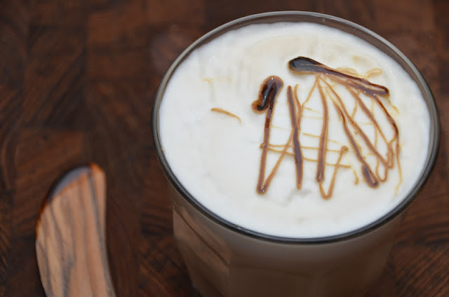 Varm mælken op og hæld den over i glasset. Rør pulver i og put evt. mere, hvis du synes den mangler smag. Kom lakridssiruppen i og hæld mælkeskum på toppen. Vi har ikke en fancy mælkskummer, så vi plejer at lave mælkeskum i en stempelkande. Hvis man kommer lidt mælk i kanden og tager stemplet hurtigt op og ned bliver mælken lækkert skummet. (det er ikke sikkert at stemplet har fantastisk godt af det, men vores er ikke gået i stykker endnu :-)) Kom lidt lakridssirup på toppen til pynt.