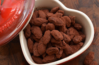 - Bland kakaopulver og lakridspulver sammen (smag til om smagen er lakrids er tydelig nok, ellers kommes mere i) Tag mandlerne en ad gangen og vend dem i pulveret med en gaffel eller ske.