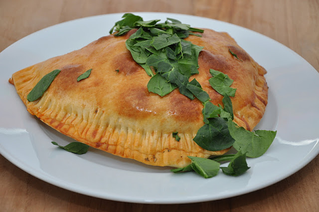 - Fold calzonen, og pres kanten med en gaffel for at lukke den helt, så fyldet ikke løber ud.