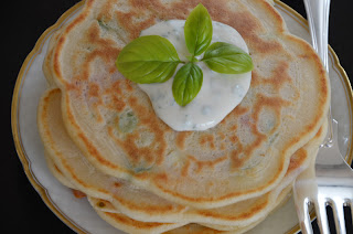 For tiden ser vi tykke pandekager overalt, altså ikke sådan bogstaveligtalt – men vi drømmer og tænker på dem. De er så lækre specielt med sirup og bær på. Til aftensmad ville vi spise et lidt sundere alternativ til de lækre dessert/brunch pandekager, og vi spekulererede derfor i hvad vi kunne tilsætte. Det blev til forårsløg og tomater, man ville helt sikkert også kunne komme spinat, svampe, squash, aubergine eller fx revet kartoffel i. Pandekagerne fungerede som tilbehør til laksefrikadeller, hvor vi også havde lavet en krydderdressing til med bl.a frisk basilikum og persille. De blev lige som vi ville have dem tykke, svampede og uimodståelige :-).