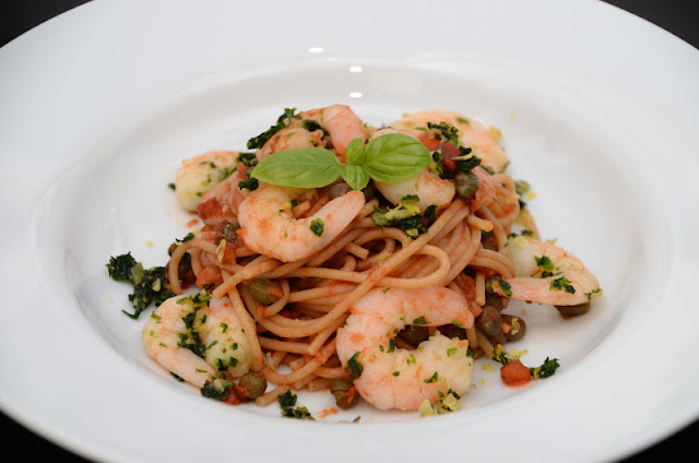I lørdags skulle jeg (Laura) spise alene. Når man er vant til at lave mad til to personer, synes jeg altid, at jeg vil lave noget nemt, når jeg er alene, fordi jeg ikke orker det store. Jeg havde været på arbejde om dagen, hvor chefen, Lars, var så sød at give mig lidt mad med hjem, fordi jeg ikke anede hvad jeg skulle lave. Det blev til pasta med tomatsauce og tigerrejer. Tomatsaucen og tigerrejerne blev sponsoreret af skovmøllen :-). I tomatsaucen var der bl.a kapers, som jeg elsker – kan sidde og spise dem uden noget andet! Tigerrejerne vendte jeg på panden i lidt hvidløg og hakket persille. Tigerrejerne og tomatsaucen blev serveret med fuldkornspasta. En lækker ret, som ikke tager mere en 15 min at lave!